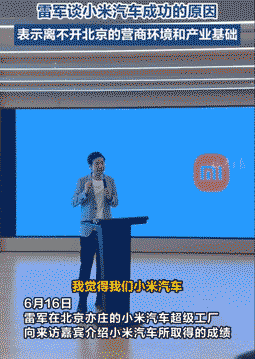 我(指雷军)我们小米汽车之所以能取得今天的成绩,第一个是北京的环境;北京的营商环境,产业基础。我觉得第二点的话(是)智能制造,因为今天整个中国的智能制造都到了很先进的水平,所以大家可以看到我们的质量得到了一致的好评,我们的安全性也得到了很好的认可。第三个的话,就是我们在核心技术、在用户需求的精准把握。